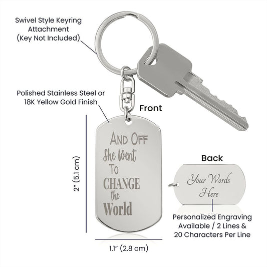 And Off She Went Engraved Dog Tag Keychain